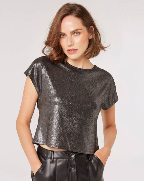 Boxy Sparkle Tee-Silver