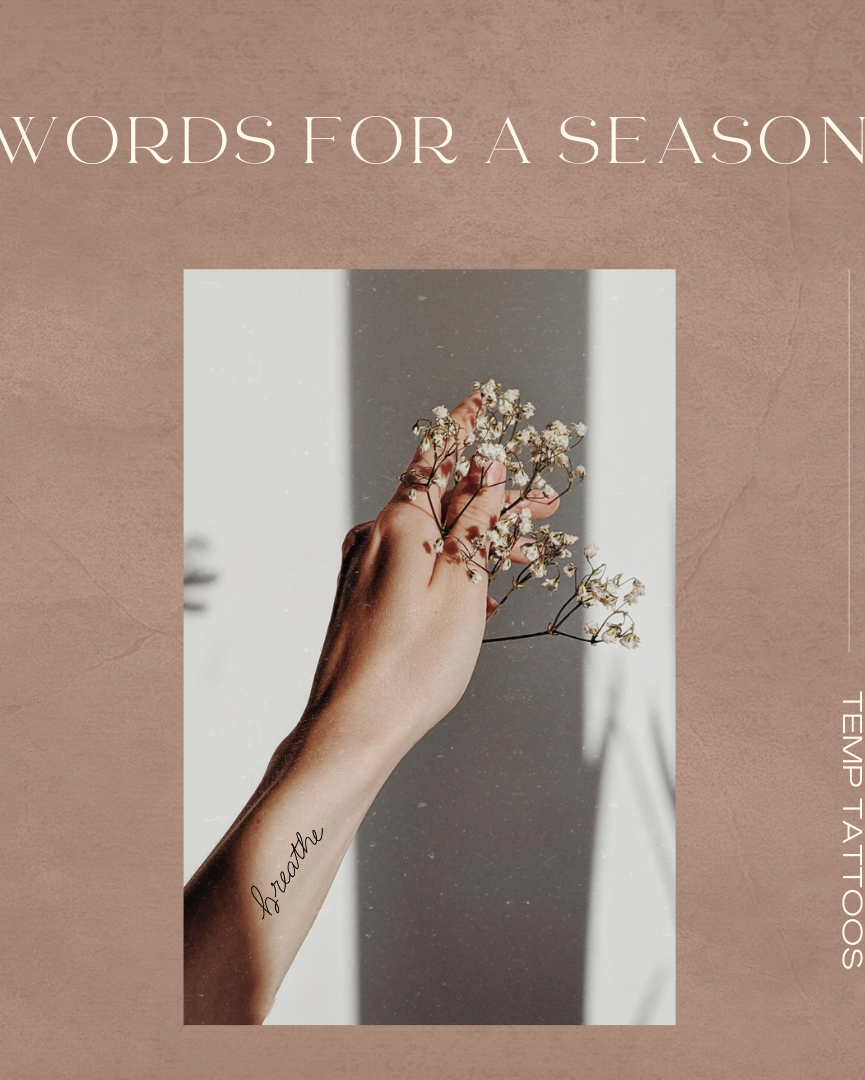 We are thrilled to offer my hand-lettering in temporary tattoos! They go on in seconds and last up to five days and are waterproof. Words for a Season, are lovely alternatives to wearing a meaningful word without the full commitment of a permanent tattoo. #wordsforaseason