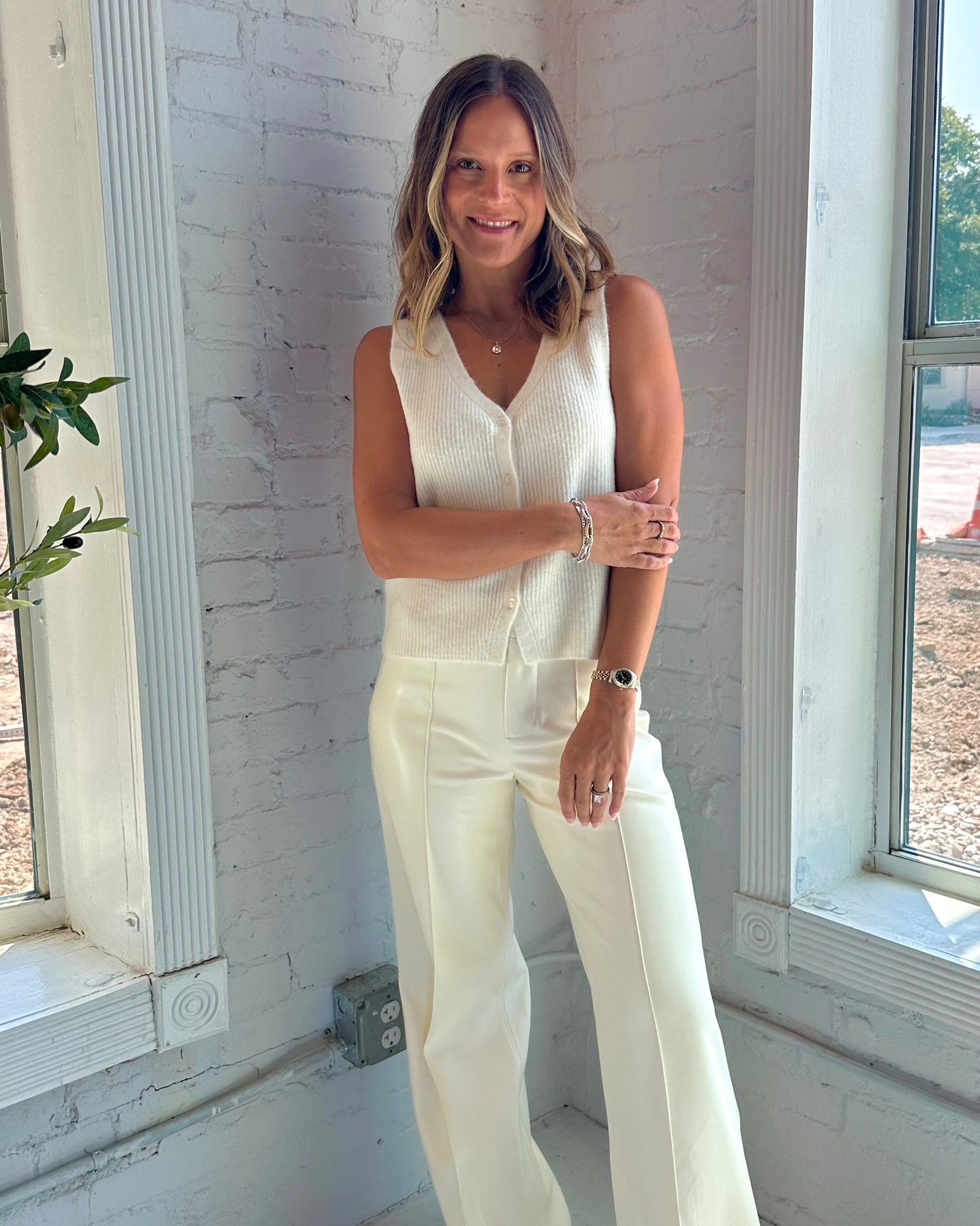 Designed in our soft Cozy Summer yarns, this sleeveless v-neck brings an airy weight and textured rib detailing. A standout piece that works solo in warm weather or layered as temps cool.