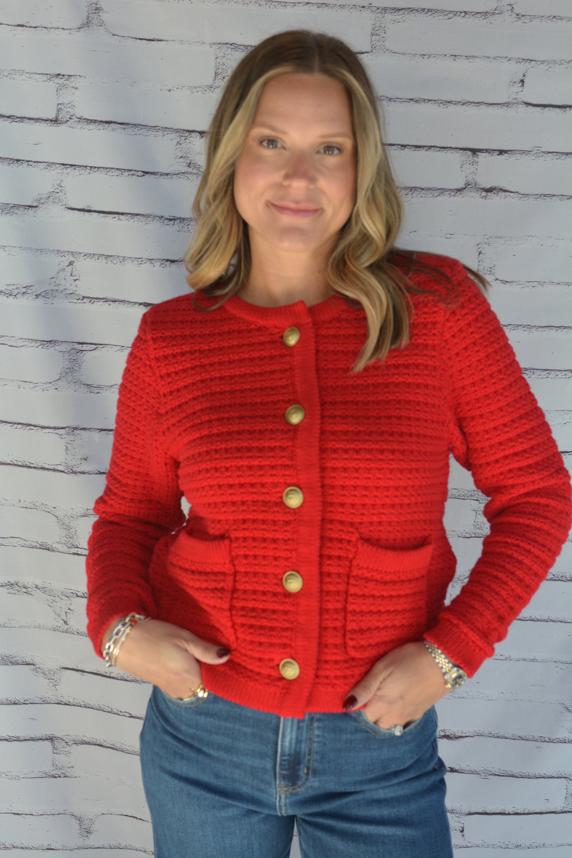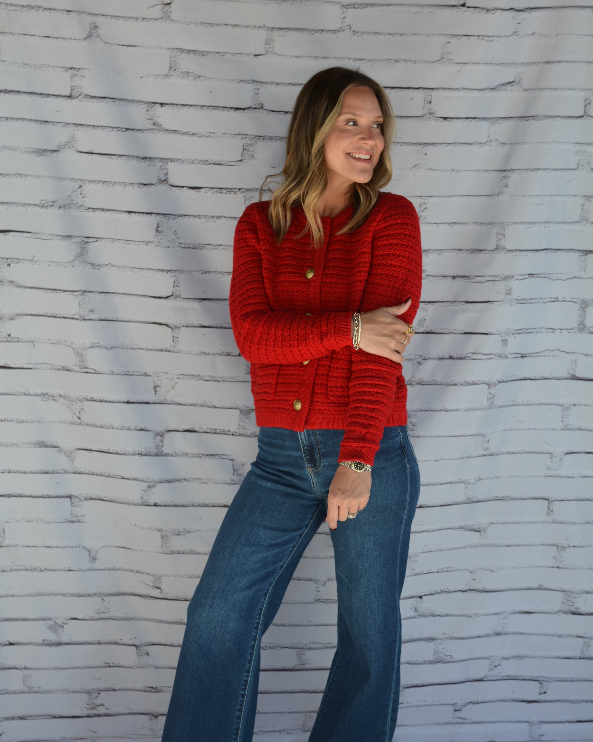 The Cambria Cardigan by Dear John adds a bold touch of color to your wardrobe with its warm salsa hue. This button-up long-sleeve cardigan combines comfort and style with its soft knit texture and easy, flattering fit. Perfect for layering, it brings a cozy yet vibrant feel to any outfit—from casual denim looks to elevated fall ensembles.