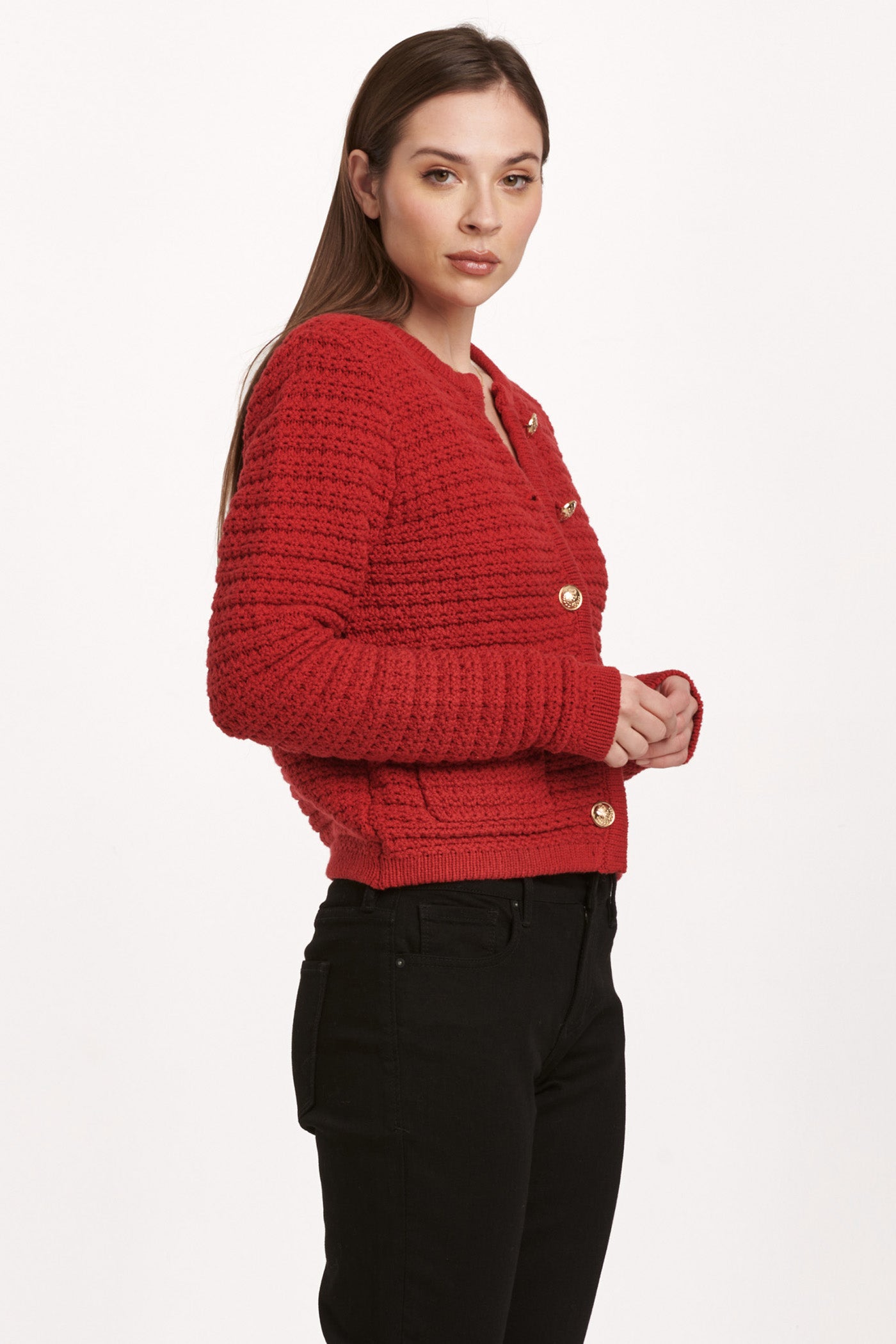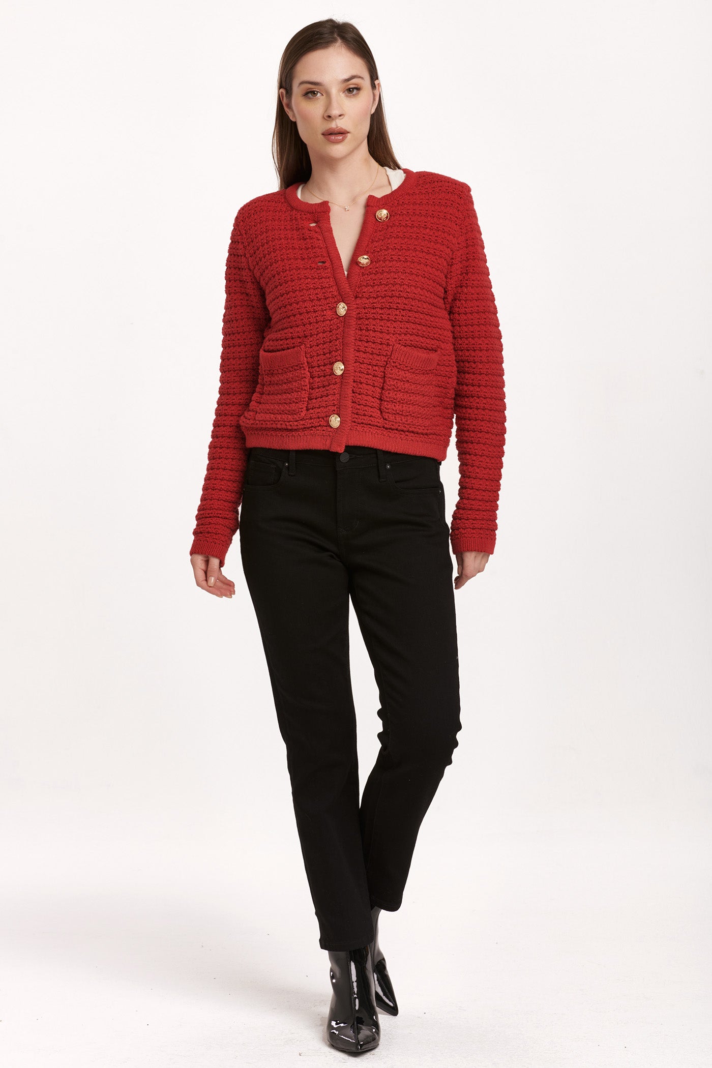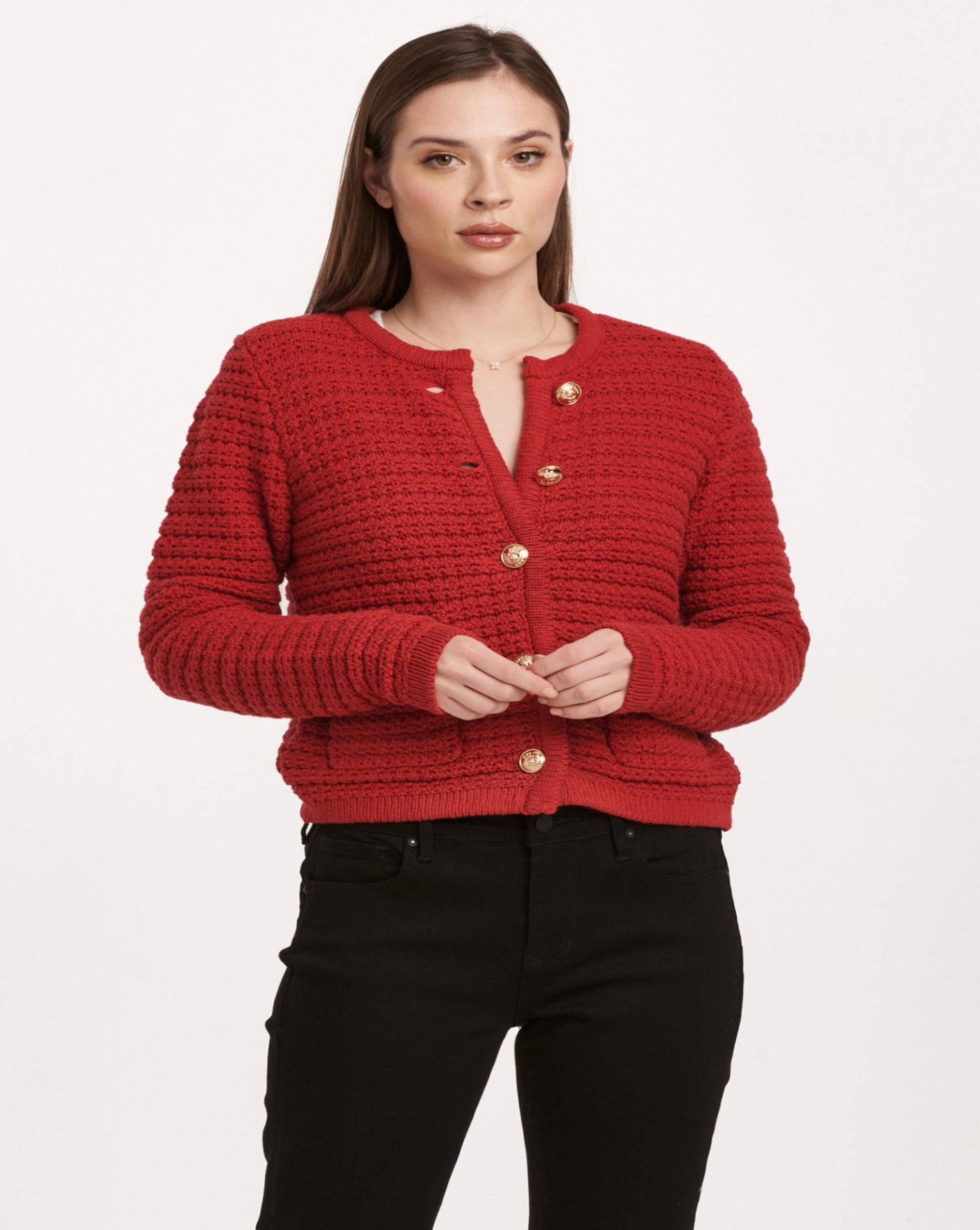 Long sleeve cardigan with button down, finished with solid color yarn, perfect for year round snuggles. Pair with our Blaire high rise straight jeans for your go to look to wear to any casual gathering. Solid color on relaxed fit.