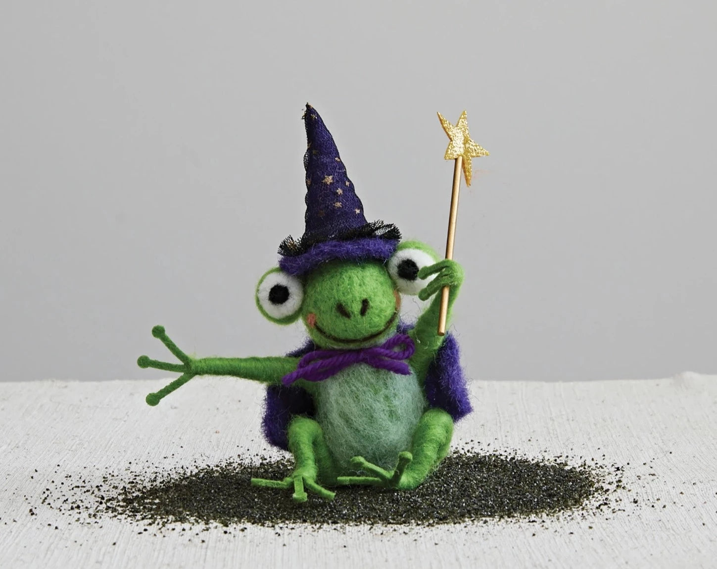 Wool Felt Wizard Frog with Hat & Wand, Multi Color