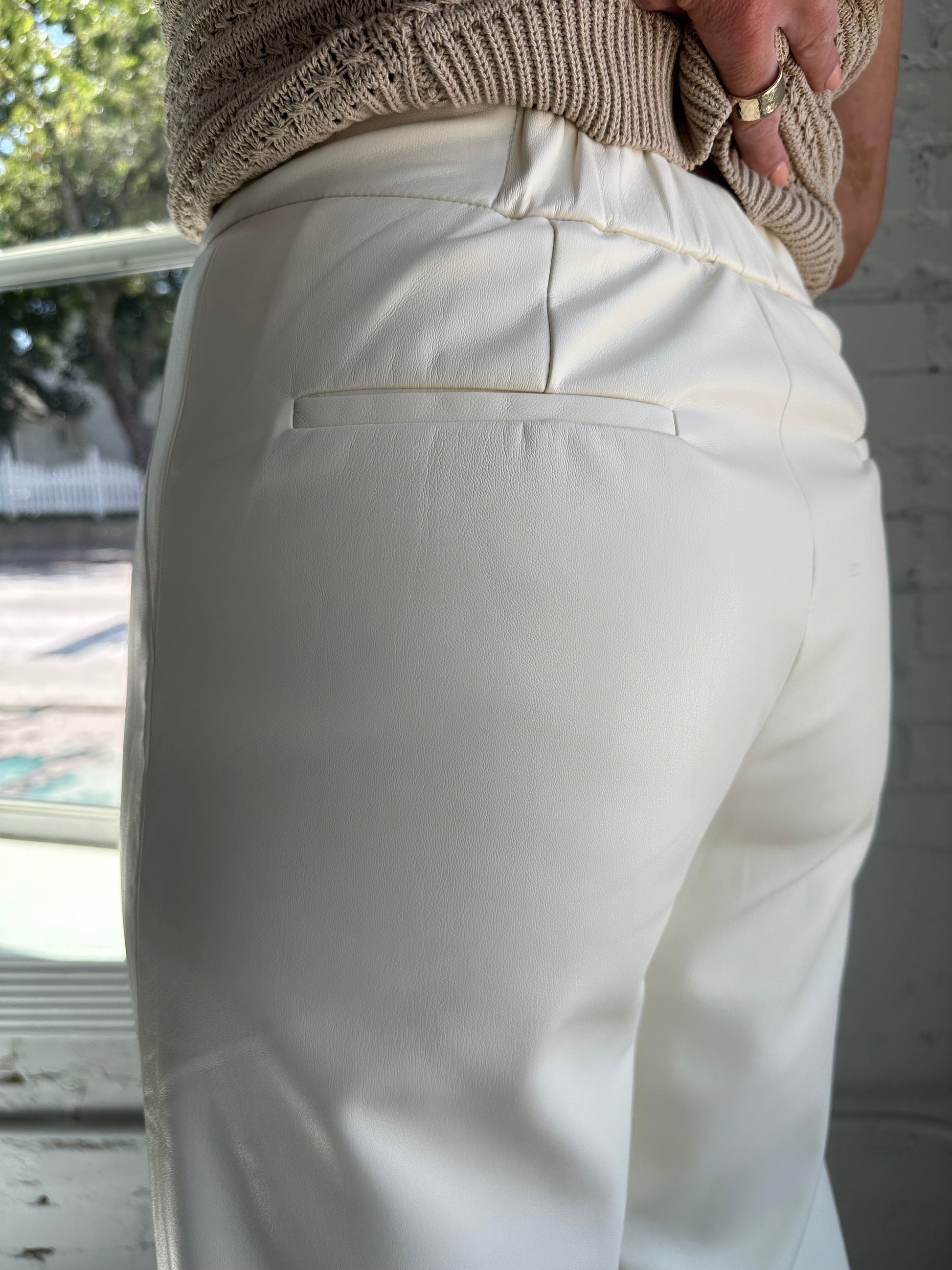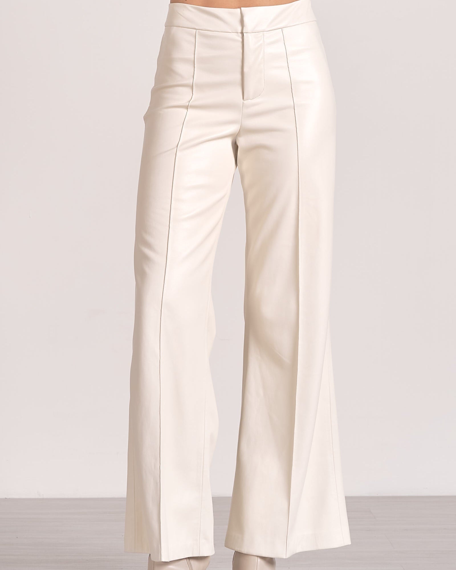 Step into bold sophistication with the Declan Faux Leather Pant. These high-waisted, wide-leg pants feature luxe faux leather in a creamy ivory hue, complete with clean seam detailing for a sleek, elongating look. Designed to flatter and command attention, they’re the perfect mix of structured edge and refined polish. Pair them with heels or sneakers — either way, you’re turning heads.