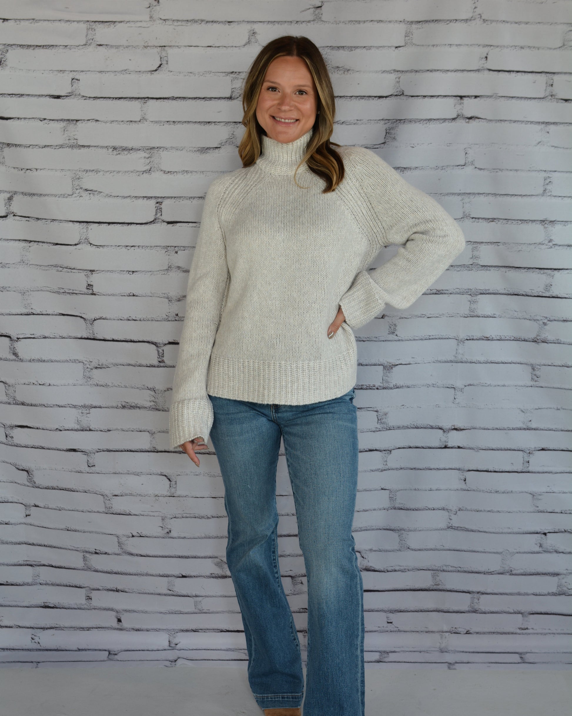 A relaxed-fit, long-sleeve sweater with a cozy funnel neck, crafted from a soft blend of 72% acrylic and 28% nylon. Finished in a versatile Turtle Dove shade with a heavy soft wash, it’s perfect for layering. Length from shoulder: 22".