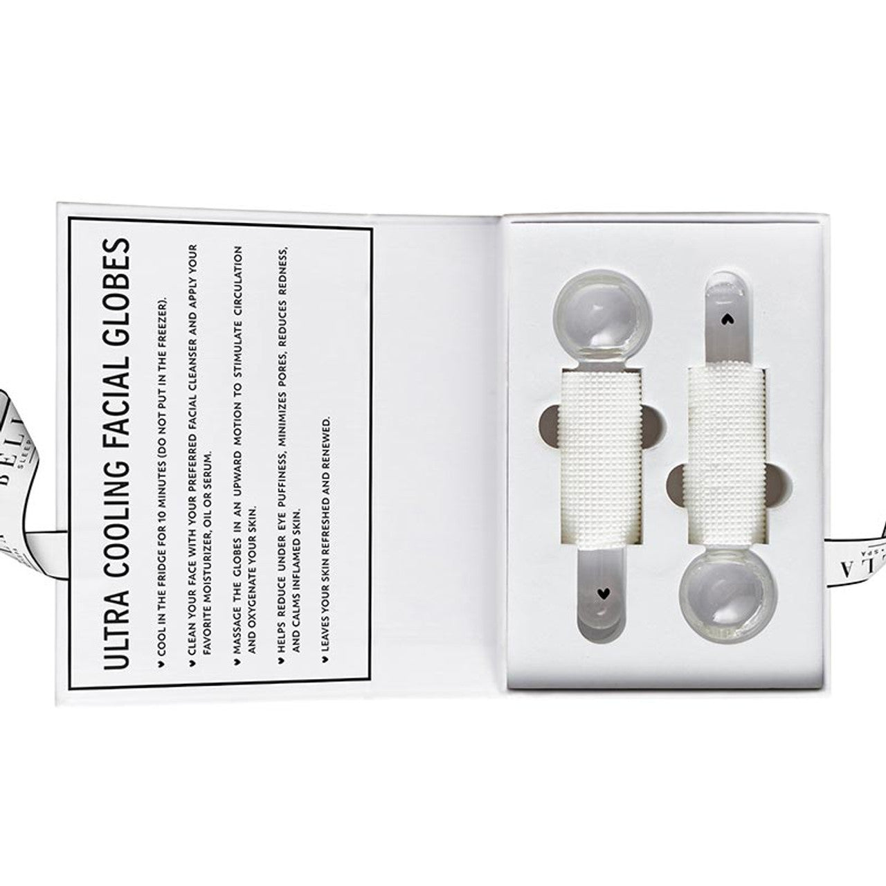 Take your daily skincare routine to the next level with our ultra cooling eye globes. Helps remove under eye puffiness, reduce pores and stimulate circulation to oxygenate the skin. Refrigerate the globes for 10 minutes prior to use. (Do not freeze)
