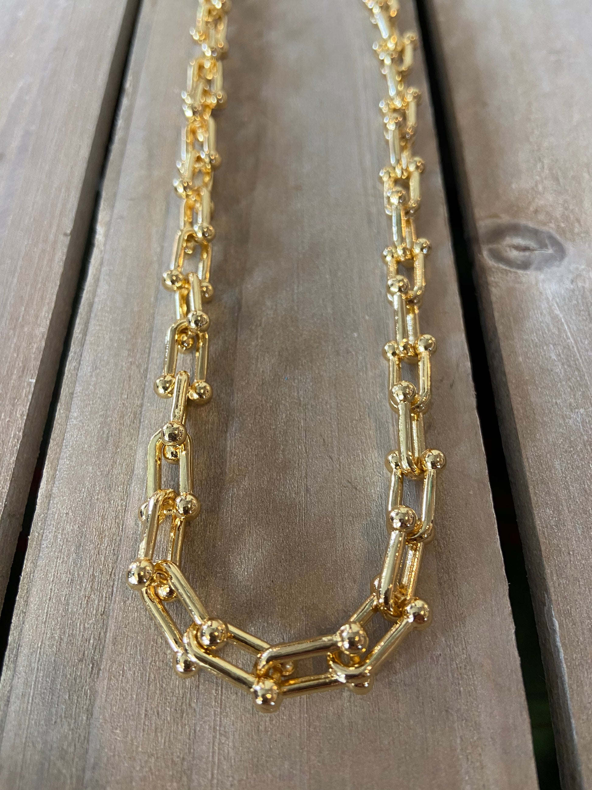 Heavy Gold Link Chain Necklace 16" gold plated with lobster clip, matching bracelet available.