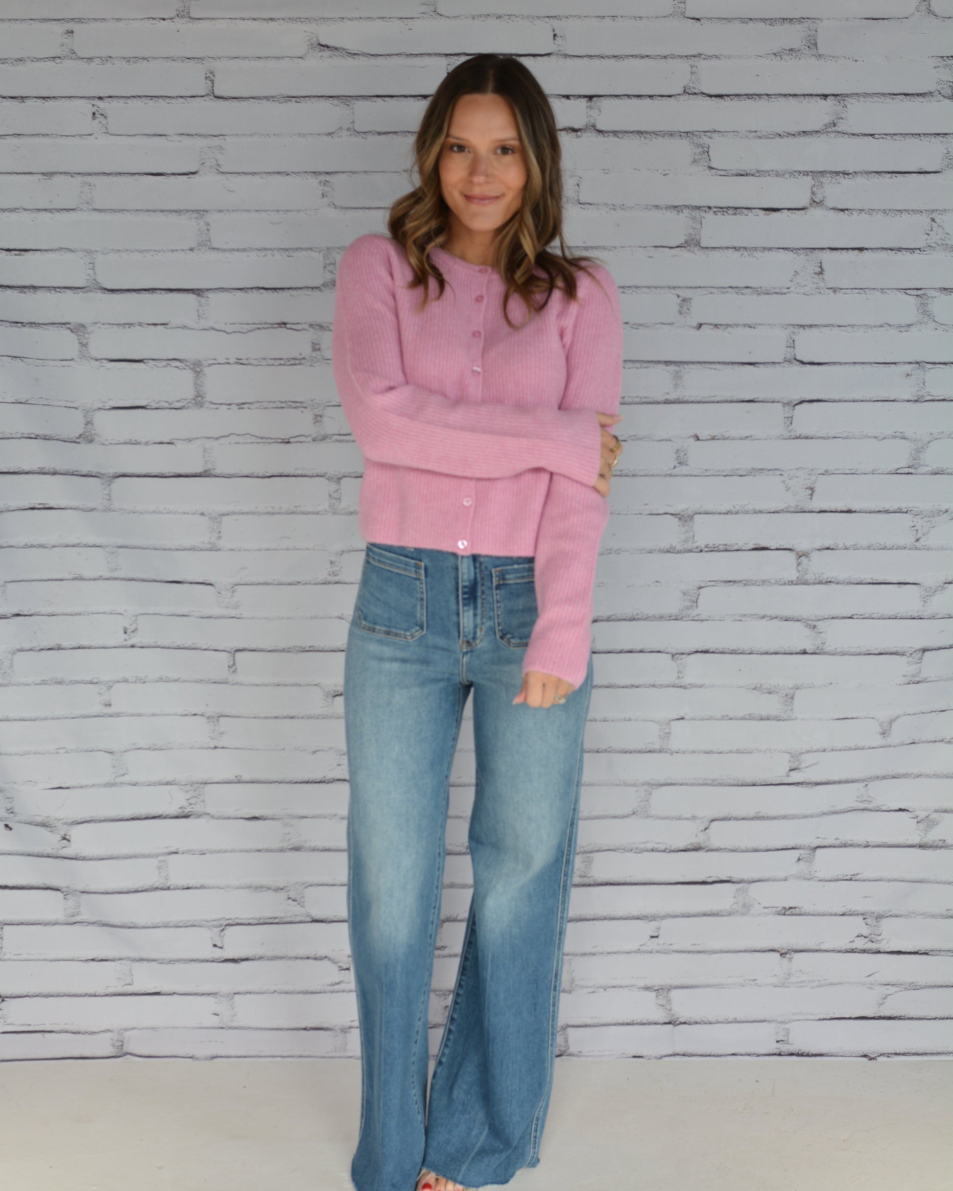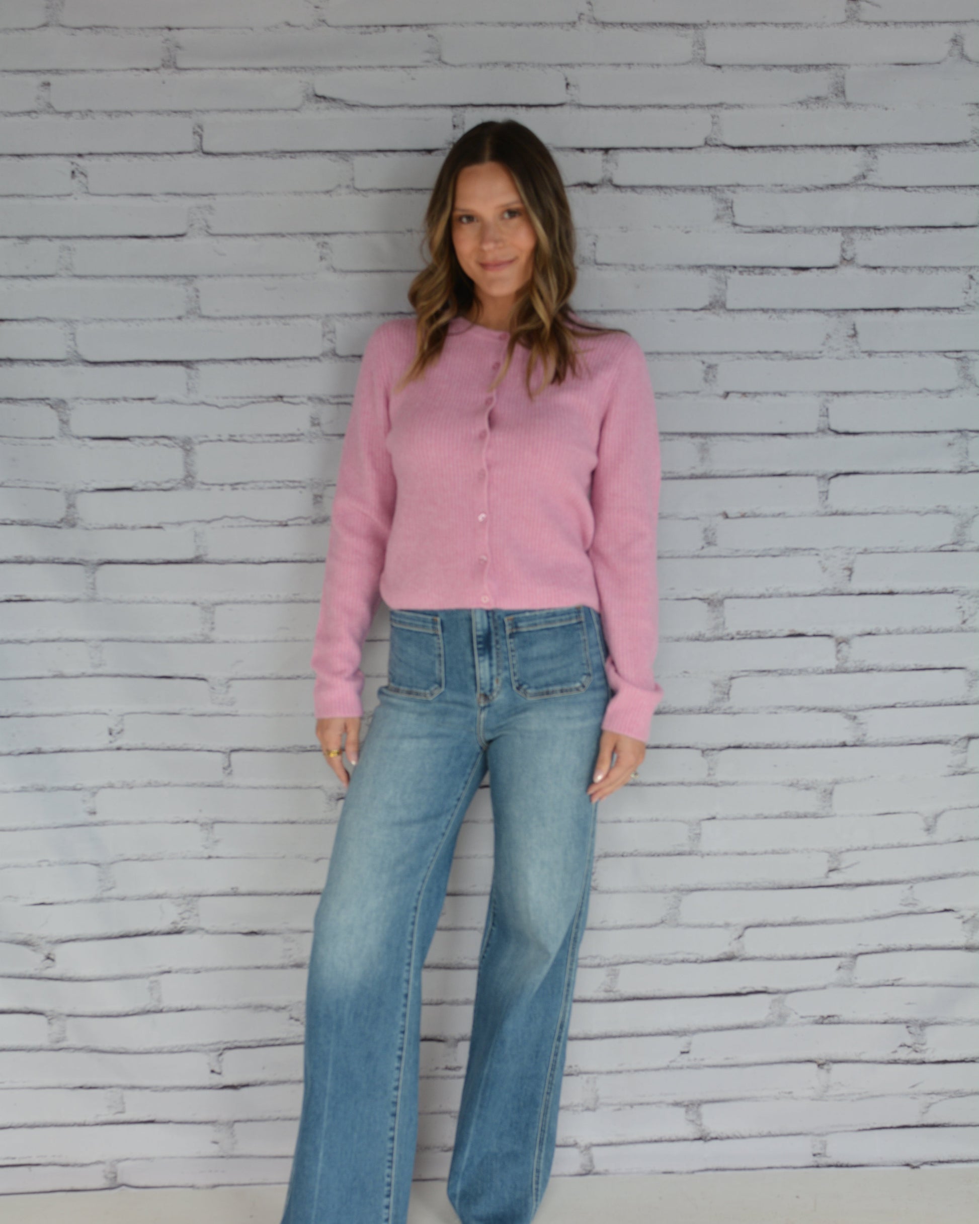 Designed with cozy spring yarns and a soft ribbed texture, this lightweight cardigan features a classic crew neckline and button-front closure. Finished with a heavy soft wash for added comfort, it offers an easy, polished layer for everyday wear. Length from shoulder measures 20 1/2".