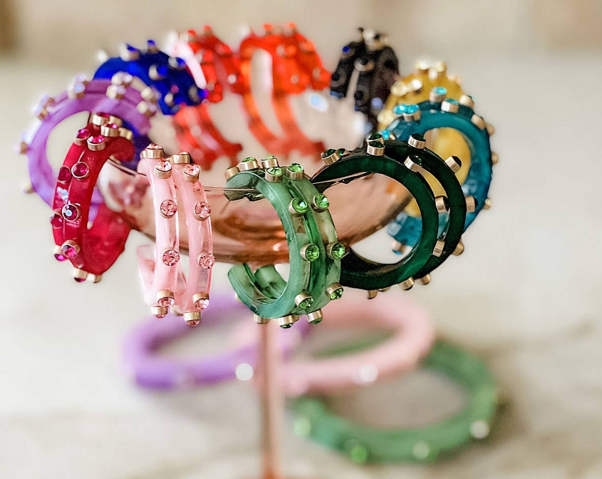 The Renee resin & rhinestone hoops make the ultimate lightweight statement earring! Add a pop of color and a little sparkle with an earring you'll feel comfortable in all day long.