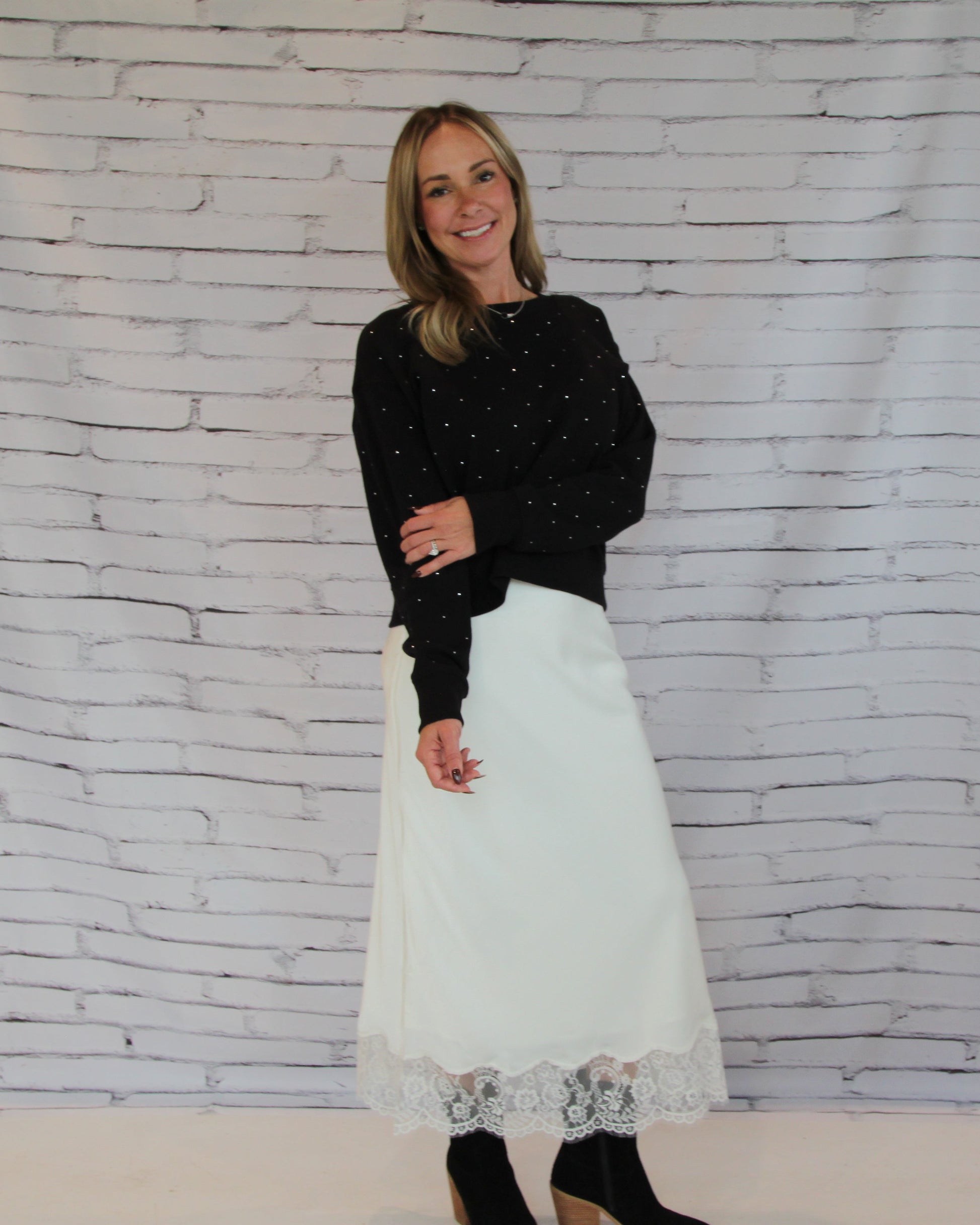 The Sparkle Crew Neck Sweatshirt brings a touch of shine to your everyday look. Made from soft, comfortable fabric, it features a relaxed fit with a classic crew neckline and ribbed details at the cuffs and hem. Subtle sparkle accents add a festive yet wearable touch, making it perfect for both casual days and special occasions. Pair it with jeans, skirts, or joggers for an effortlessly stylish outfit.