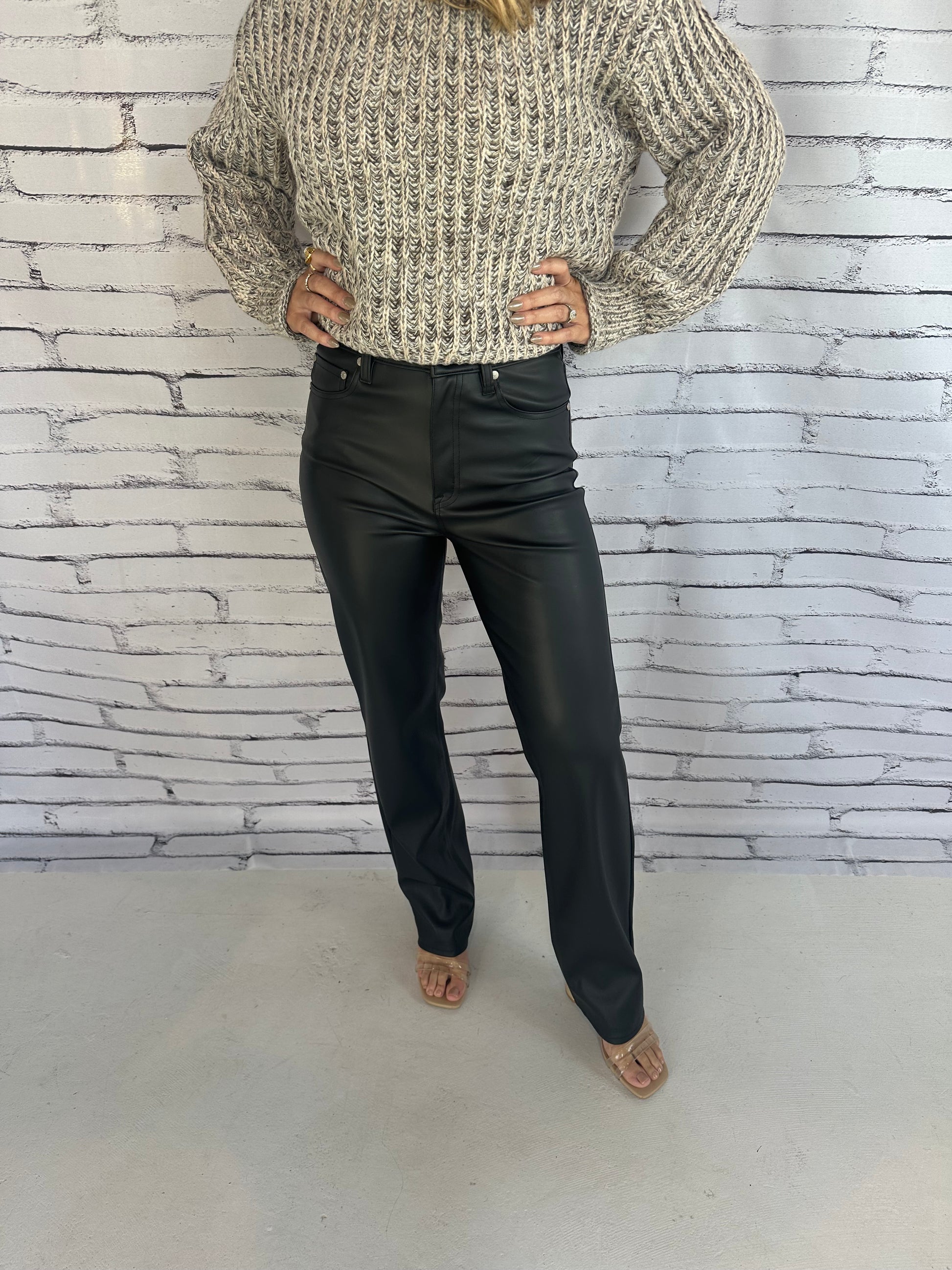 Take it easy like Sunday morning in this waist defining, straight leg in a faded black wash. Constructed in our "Repreve" denim, it is a stretch fabric created from recycled plastic.